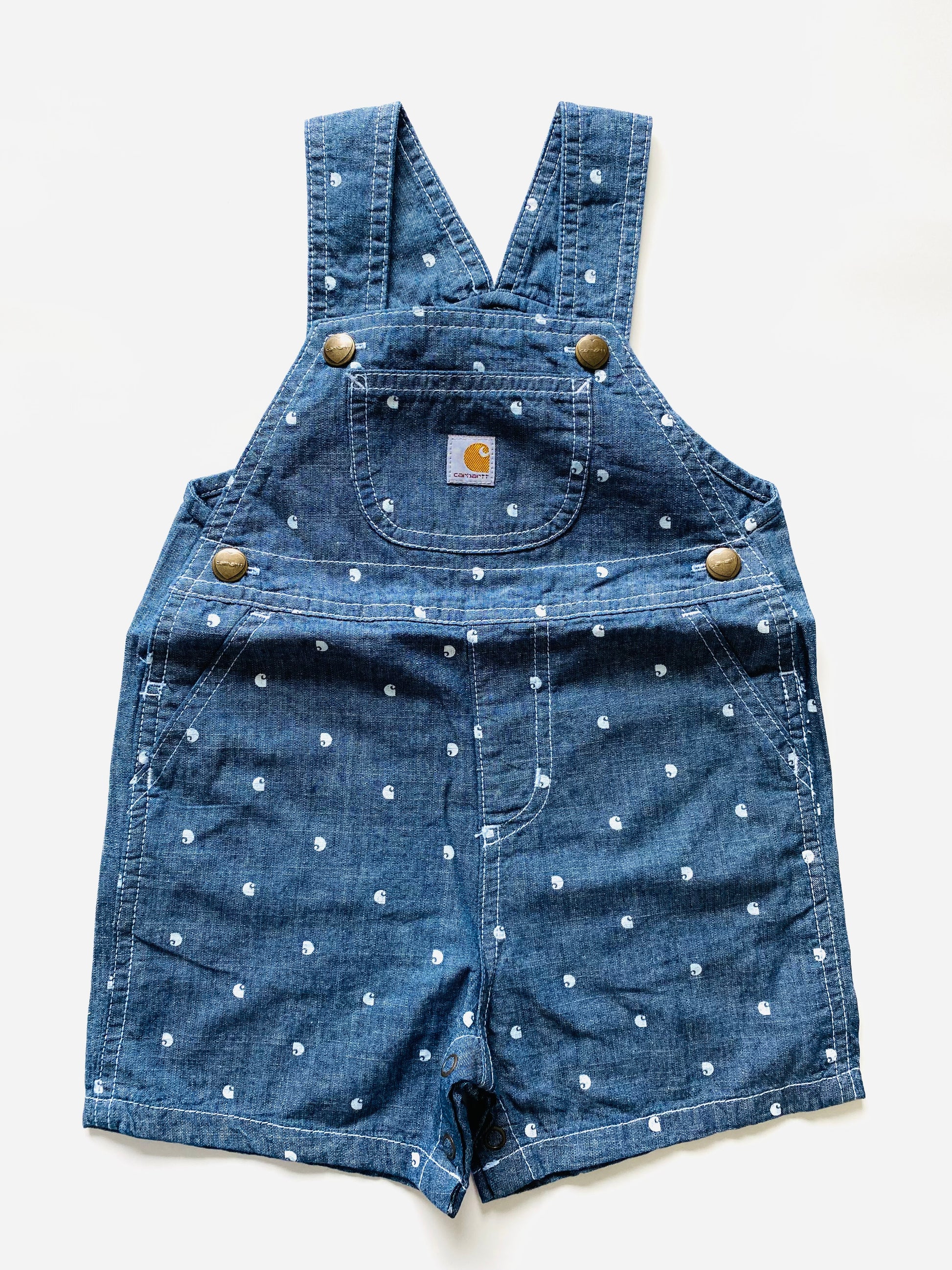 Carhartt Navy Shortalls, classics, dome snaps at legs.