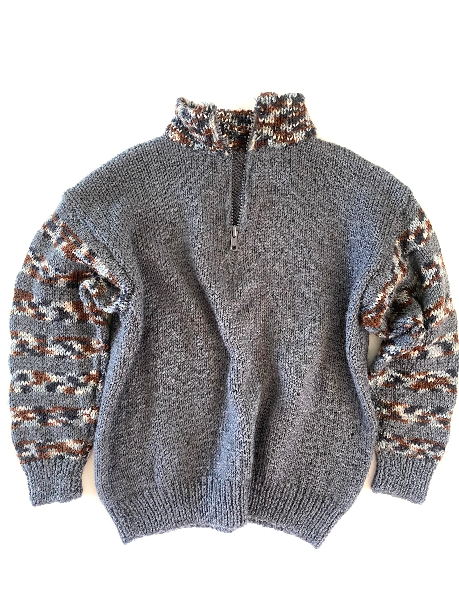 Grey and Stripe Knit - amazing handmade creation, zip up neck and lovely arm and neckband detailing.